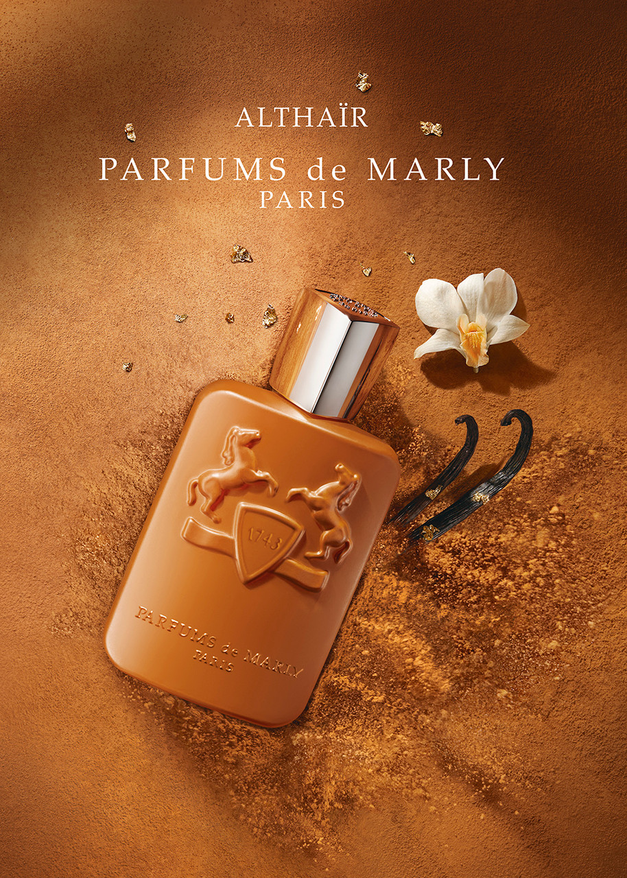 Althaïr by Parfums de Marly is a Amber Vanilla fragrance for men. This is a new fragrance. Althaïr was launched in 2023. Althaïr was created by Hamid Merati-Kashani and Ilias Ermenidis.Parfums de Marly launches Althaïr, a masculine fragrance that pays homage to French haute parfumerie and the woody-vanilla-amber fragrance family.
