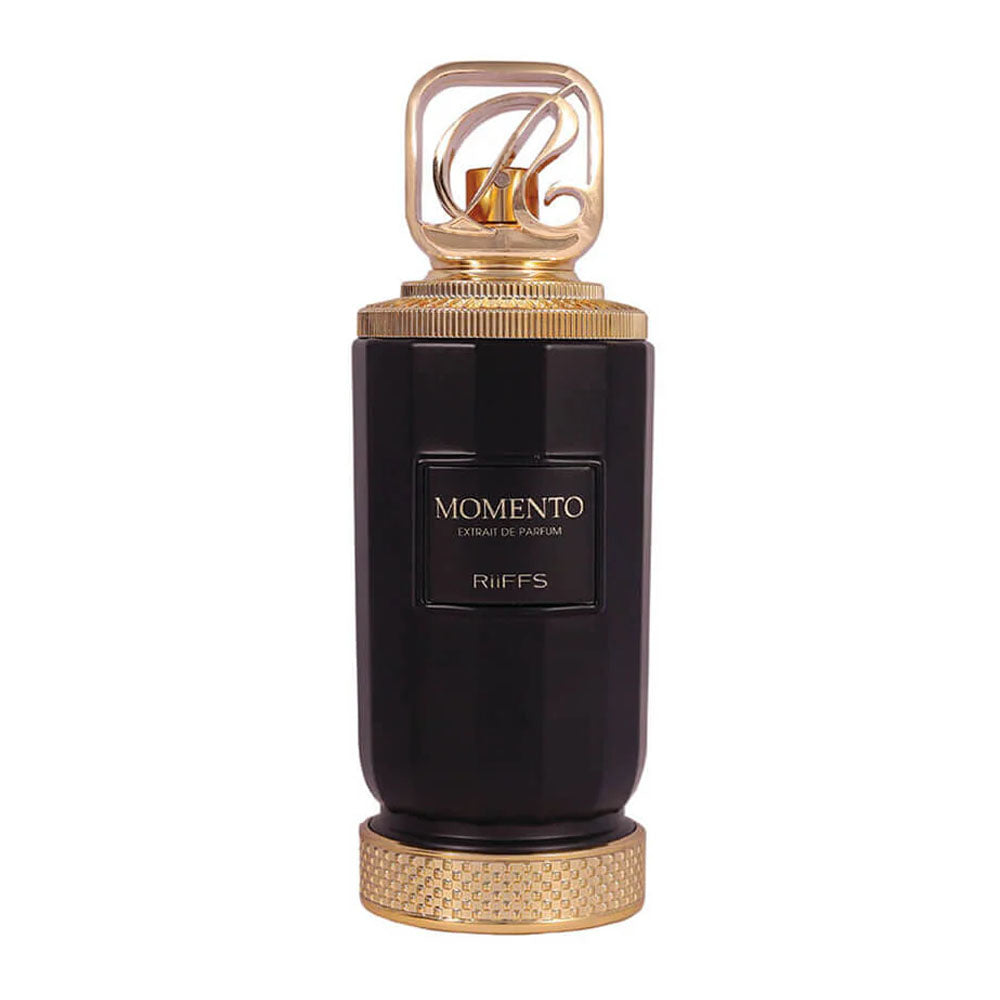 Riiffs Momento is a unisex Woody Spicy Extrait de Parfum that was launched in 2025, featuring a bold opening of Mandarin, Saffron, and Sugar, a rich heart of Tonka Bean, Damask Rose, and Agarwood (Oud), and a luxurious base of Amberwood, Caramel, and Cedarwood. Described as intensely magnetic and sophisticated, it leaves a bold, addictive, and charismatic trail, suitable for both modern men and women who want to make a lasting impression.